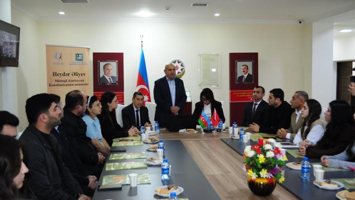 Masallı rayon Heydər Əliyev Mərkəzinin drektoru Dilbər İbayeva çıxışında qeyd edib ki, rayon gəncləri ilə birlikdə bu mövzuda tədbirlər daim keçirilir: “Çalışırıq ki, gənclərimiz Ulu Öndərimizin zamanında qəbul etdiyi ilk Konstitusiyamız ilə geniş tanış olsunlar”.