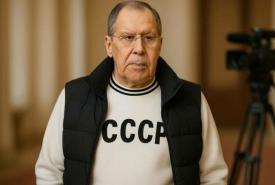 Rusiya XİN başçısı Sergey Lavrovun Alyaska görüşünə nümayişkaranə şəkildə üzərinə SSRİ yazılan köynəklə gəlmə
