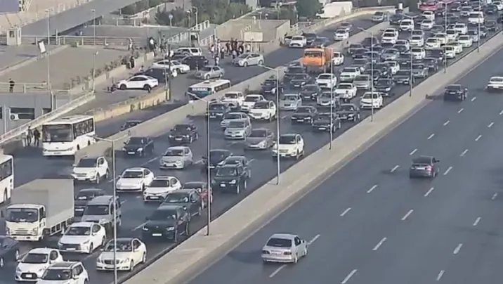 Bakının bir sıra yollarında nəqliyyatın sıxlığı yaranıb.