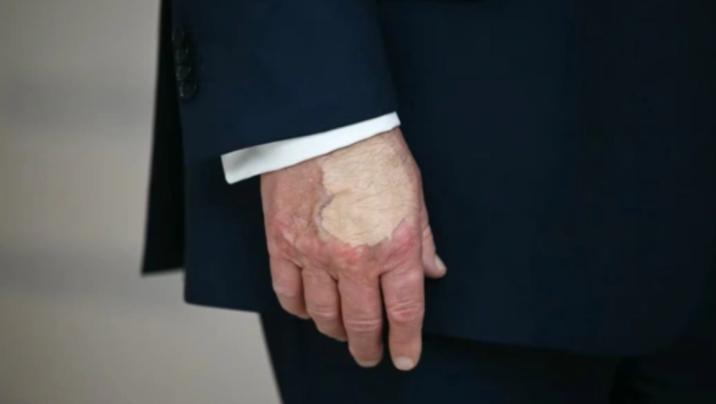 ABŞ Prezidenti Donald Trampın sağ əlində yenidən qalın təbəqə örtücü (tonal) krem ilə gizlədilmiş qançır müşahidə edilib.