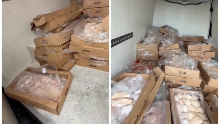 Baş Dövlət Yol Polisi İdarəsinin Saray qəsəbəsində yerləşən stasionar postunda xidmət aparan YPX əməkdaşları tərəfindən “Mercedes” markalı avtomobilin saxlanılması zamanı aparılan yoxlama nəticəsində yük yerində təxminən 600 kiloqram toyuq əti aşkarlanıb.