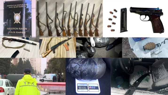 Belə ki, Mehdiabad Polis Bölməsinin əməkdaşları tərəfindən keçirilən tədbirlərlə əvvəllər məhkum olunmuş Rafiq Bədirovdan “Makarov” markalı tapança, 7 patron, eləcə də Mehdiabad qəsəbəsi ərazisindən 1 ədəd “Kalaşnikov” markalı avtomat, 12 ədəd patron, Abşeron rayon sakini olan Pərvanə Musayevadan satmaq məqsədi ilə əldə etdiyi 3 kiloqramdan artıq marixuana aşkar edilib. Vətəndaşlar tərəfindən 14 ədəd tüfəng Mehdiabad Polis Bölməsinə təhvil verilib.