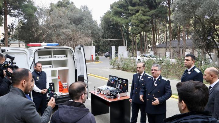 Kriminalistik avtomobil və avadanlıqlarla tanış olan qonaqlara istintaq hərəkətlərinin keçirilməsi zamanı müasir texnikadan istifadənin əhəmiyyəti izah olunub.