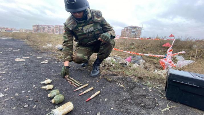Hüquq-mühafizə orqanı əməkdaşları ilə birgə ərazidə müvafiq təhlükəsizlik tədbirləri görüldükdən sonra hadisə yerinə baxış zamanı aşkar edilmiş sursatların döyüş tətbiqinə yararlı 2 ədəd RQO əl qumbarası, 2 ədəd UDZ partladıcısı, 12 ədəd müxtəlif çaplı mərmi və 1 ədəd RDQ tüstü qumbarası olduğu müəyyən edilib.
