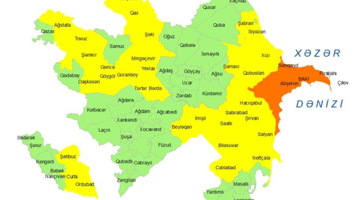 “Sarı” xəbərdarlığa uyğun olaraq şərq küləyi Yevlax, Bərdə, Tərtər, Mingəçevir, Siyəzən, Naftalan, Göygöl, Ağstafa, Gəncə, Şəmkir, Tovuz, Goranboy, Daşkəsən, İmişli, Beyləqan, Saatlı, Sabirabad, Hacıqabul, Biləsuvar, Cəlilabad, Şahbuz, Naxçıvan, Ordubad, Culfa, Qobustan, Balakən, Qax, Zaqatala, Şabran, Xızı, Şəki, Salyan və Neftçalada fasilələrlə saniyədə 13,9-20,7 metr arasında dəyişəcək.