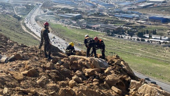 Badamdarda uçqun riski olan qaya parçaları ərazidən götürülüb.