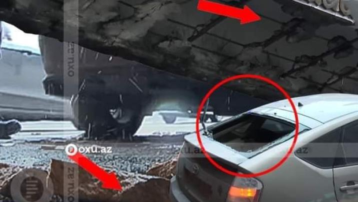Bir neçə gün əvvəl Moskva prospektində, “Şamaxinka” adlandırılan ərazidə yerləşən körpüdən bir daş qoparaq “Toyota Prius” markalı avtomobilin üstünə düşüb. Hadisə zamanı sürücü xəsarət alıb.