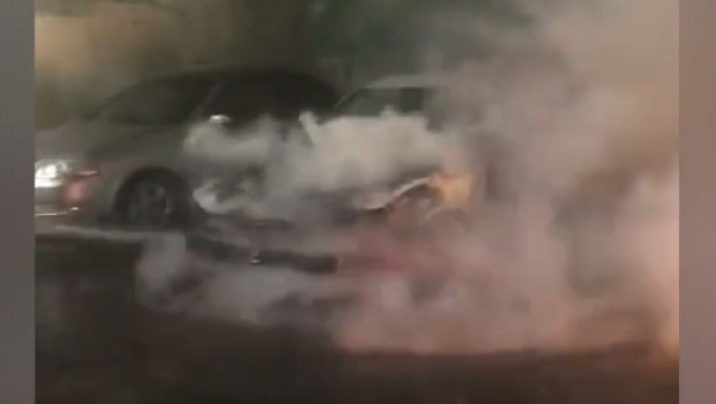 Avtomobilin qalan hissəsi və yaxınlıqdakı avtomobillər yanğından mühafizə olunub.