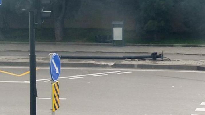 Qəza zamanı yeni quraşdırılmış işıqfor yararsız vəziyyətə düşüb.