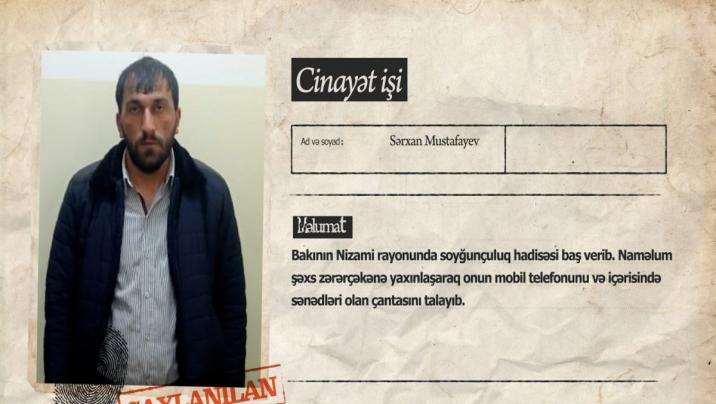 Daxili İşlər Nazirliyindən Stopnarkotik.az-a verilən məlumata görə, naməlum şəxs zərərçəkənə yaxınlaşaraq onun mobil telefonunu və içərisində sənədləri olan çantasını talayıb. Nizami rayon Polis İdarəsinin 25-ci Polis Şöbəsi əməkdaşlarının həyata keçirdikləri tədbirlərlə hadisəni törətməkdə şübhəli bilinən Sərxan Mustafayev saxlanılıb.