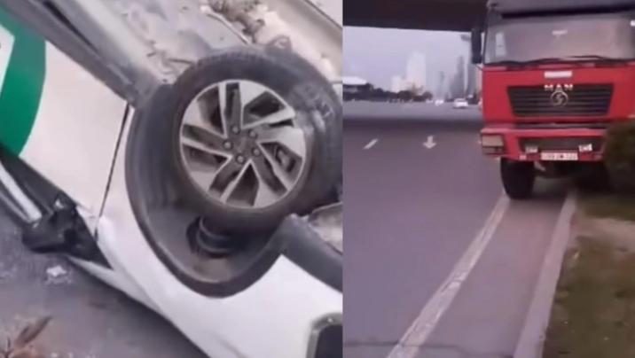 "MAN" markalı yük maşını BYD markalı minik avtomobilinə çırpılıb. Hadisə nəticəsində minik avtomobili aşıb.