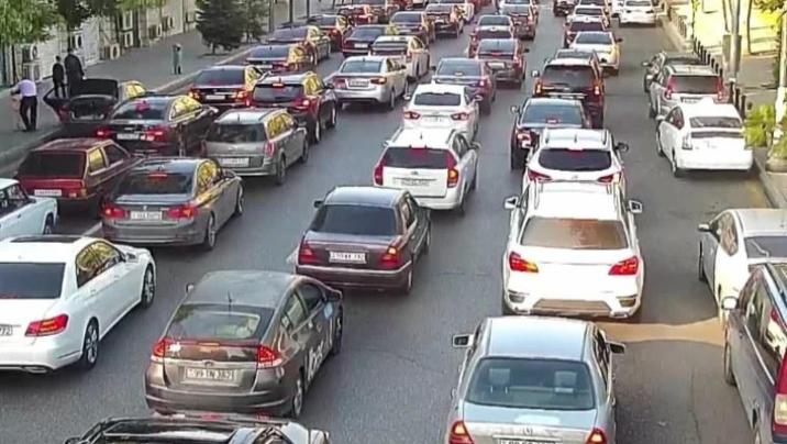 Bakının bir sıra yollarında tıxac yaranıb.