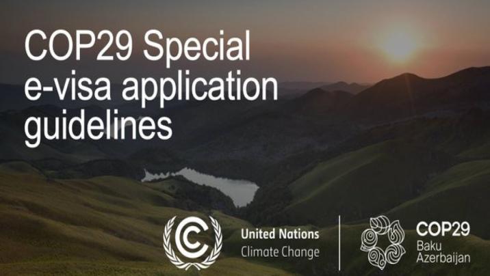 Azərbaycan Hökuməti UNFCCC Onlayn Qeydiyyat Sistemi vasitəsilə COP29-a qeydiyyatdan keçmiş iştirakçılar üçün pulsuz “COP29 Xüsusi Viza”sın tətbiq edib.