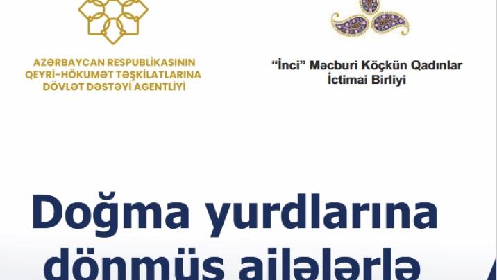 “İnci” Məcburi köçkün qadınlar İctimai Birliyi Azərbaycan Respublikasının Qeyri-Hökumət Təşkilatlarına Dövlət Dəstəyi Agentliyinin dəstəyi ilə “Doğma yurdlarına dönmüş ailələrlə sosial-psixoloji iş” layihəsini həyata keçirir.