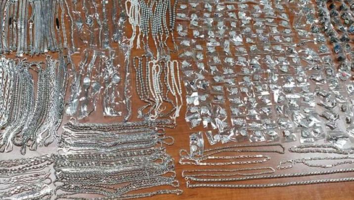 Stopnarkotik.az xəbər verir ki, baxış zamanı yük nəqliyyat vasitəsinin qoşqusunda gömrük orqanlarına bəyan edilməyən 84 ədəd üzük, 29 ədəd kulon, 134 ədəd boyunbağı-kulon, 17 ədəd təsbeh, 59 ədəd qolbaq, 62 ədəd boyunbağı, ümumilikdə 5 200 qram gümüş zinət əşyaları aşkar olunub.