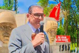 Faşizm üzərində Qələbə Günü – mayın 9-da tədbirdə SSRİ bayrağı altında, sinəsin