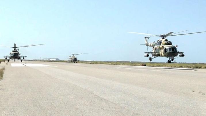Plana uyğun olaraq, helikopter bölmələri qrup şəklində bazalanma aerodromundan uçuşlar edərək poliqonda şərti düşmənin yerüstü hədəflərinin məhv edilməsi üzrə tapşırıqları yerinə yetiriblər.