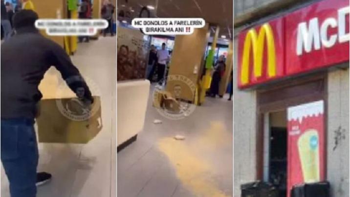 Şəhərdə yerləşən “McDonald’s” restoranına müştərilər içəridə olduğu bir zamanda bir qutu siçan buraxılıb. Həmin anlar mobil telefon vasitəsilə lentə alınıb.