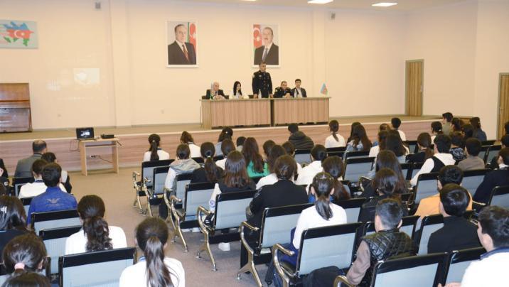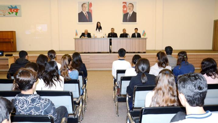 Sonra Daxili İşlər Nazirliyi sistemində təhsilə və xidmətə təşviq, Polis Akademiyasının tarixi, daxili işlər orqanlarında xidmətlə bağlı məktəblilərə məlumat verilib. Polis akademiyasının ölkəmizdə savadlı kadrların yetişməsində, daxili işlər orqanlarının hüquqşünaslarla təmin olunmasında mühüm rol oynadığı diqqətə çatdırılıb. Gənclərimizin hərtərəfli inkişafı üçün yaradılan müasir şərait, zəngin kitabxanalar, xarici dil kursları, laboratoriyalar, yataqxanalar, idman və atıcılıq yerləri, habelə asudə vaxtlarının səmərəli təşkili məqsədilə görülən işlər barədə danışılıb.
