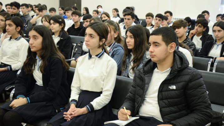 Sonra müzakirə olunan mövzularla bağlı videoçarxlar nümayiş etdirilib və məktəblilərin sualları cavablandırılıb.