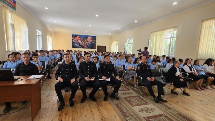Görüşdə çıxış edən ŞRPŞ-nin rəisi, polis polkovniki Elnur Həsənov narkotik vasitələrin insan sağlamlığına və mənəviyyatına vurduğu zərbə, ondan qorunma yolları barədə şagirdlərə ətraflı məlumat verib. Onların asudə vaxtlarında idmanla,ictimai əhəmiyyəti olan işlərlə məşğul olmalarının önəminə diqqət çəkib.