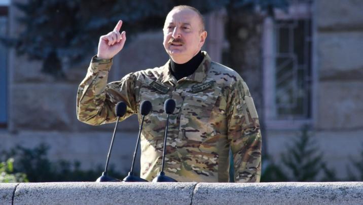 “O vaxt bizim Silahlı Qüvvələrimiz Xankəndinin bir addımlığında idi. Müharibənin o vaxt dayandırılması bizim şüurlu seçimimiz idi. Bu gün bizim, bax, burada - Xankəndi şəhərinin mərkəzi meydanında hərbi paradı keçirməyimiz bir daha onu göstərir ki, nə qədər düzgün, müdrik addım idi”, - Prezident bildirib.