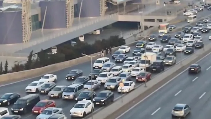 Bakının bir sıra yollarında nəqliyyatın sıxlığı yaranıb.