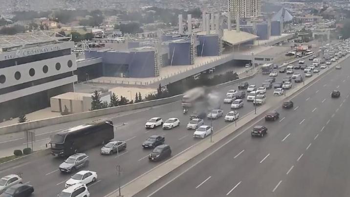 Bakının bir sıra yollarında nəqliyyatın sıxlığı yaranıb.
