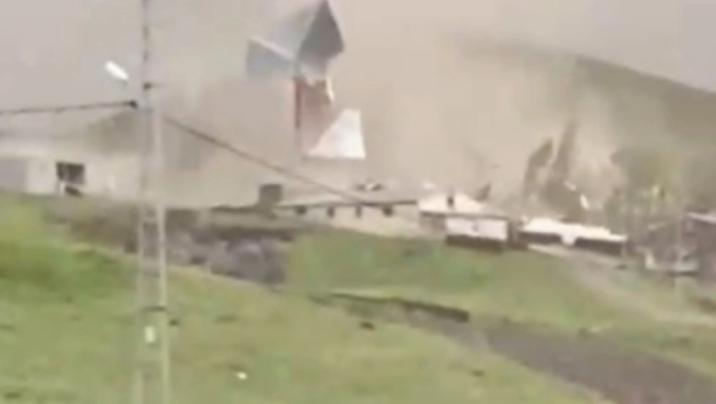 Məlumata görə, küləyin sürətinin artması nəticəsində altı evin dam örtüyü uçub, bəzi tövlələrə ziyan dəyib. Həmin anlar mobil telefon kamerası ilə lentə alınıb.