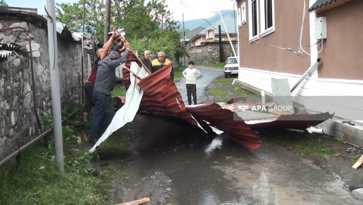 Qax rayonunun Qaxbaş, Qaxingiloy, Ağçay və İlisu kəndləri istiqamətində güclü külək müşahidə olunub. Qaxingiloy kənd sakini Kulaşvili Varobyona məxsus fərdi yaşayış evinin dam örtüyü külək nəticəsində qoparaq kənara atılıb. Evdəki əşyalar leysan nəticəsində yararsız hala düşüb.