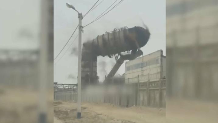 Qazaxıstanda 63 metrlik qüllə alovlanaraq uçub.