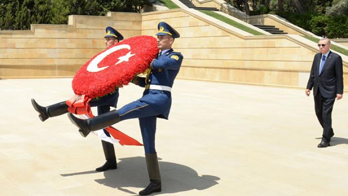 Prezident Rəcəb Tayyib Ərdoğan “Əbədi məşəl” abidəsinin önünə əklil qoyub.