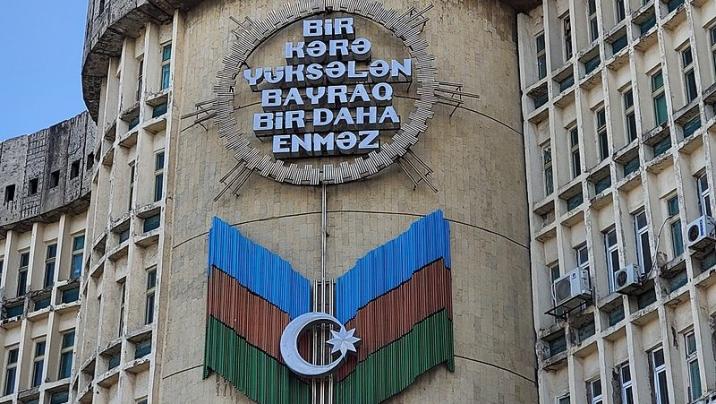 Azərbaycan Xalq Cümhuriyyətinin (AXC) qurucularından olan Məhəmməd Əmin Rəsulzadənin "Bir kərə yüksələn bayraq bir daha enməz!" şüarı əks olunan lövhə "20 Yanvar" dairəsi kimi tanınan ərazidəki səhiyyə müəssisəsinin binası üzərindən götürülüb. Lövhənin altında Azərbaycan bayrağı da əks olunmuşdui.