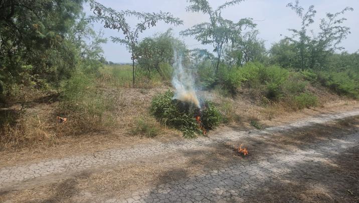 Stopnarkotik.az xəbər verir ki, Şirvan Şəhər Polis Şöbəsinin əməkdaşlarının “Xaş-xaş-2024” şərti adı altında keçirdikləri əməliyyat-axtarış və profilaktik tədbirlər nəticəsində aşkarlanan çətənə kolları daha sonra yandırılaraq məhv edilib.