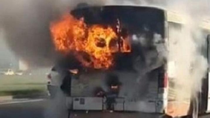Sumqayıt şəhərində “AKİA” markalı 5 nömrəli avtobusun mühərrik hissəsi yanıb.