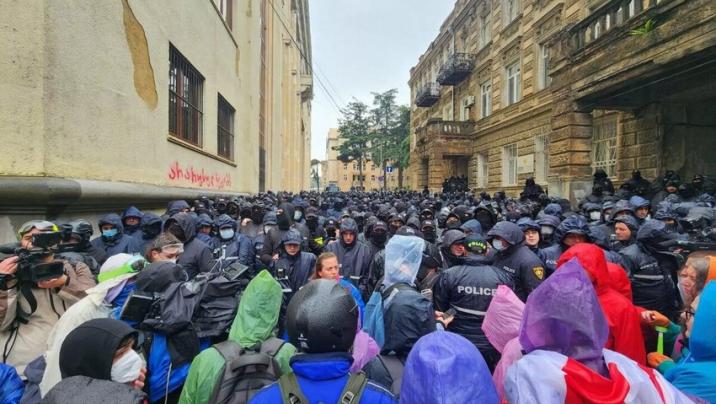 Bildirilib ki, qalmaqallı “Xarici təsirin şəffaflığı haqqında” qanun layihəsinin qəbulundan sonra bir qrup etirazçı parlament binasının yaxınlığındakı hasarı sındırıb.