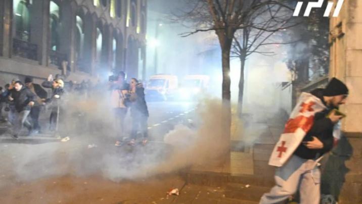 Tiflisin mərkəzi Rustaveli prospektində davam edən etiraz aksiyasında iki media nümayəndəsi peşə borcunu yerinə yetirərkən xəsarət alıb.