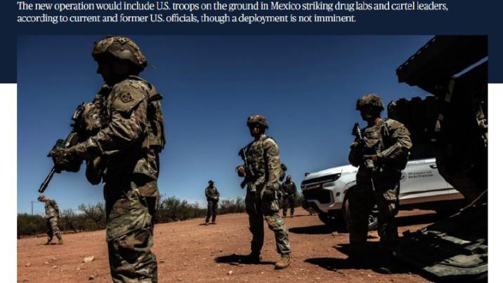 NBC News bildirib ki, Donald Tramp administrasiyası narkotik laboratoriyalarını və kartel liderlərini hədəf almaq üçün Amerika hərbi və kəşfiyyat işçilərini Meksikaya göndərmək planı hazırlayır. Əməliyyatda xüsusi təyinatlı qüvvələrin və Mərkəzi Kəşfiyyat İdarəsinin məxfi missiya çərçivəsində iştirakı gözlənilir, lakin onun həyata keçirilməsi ilə bağlı yekun qərar hələ verilməyib.
