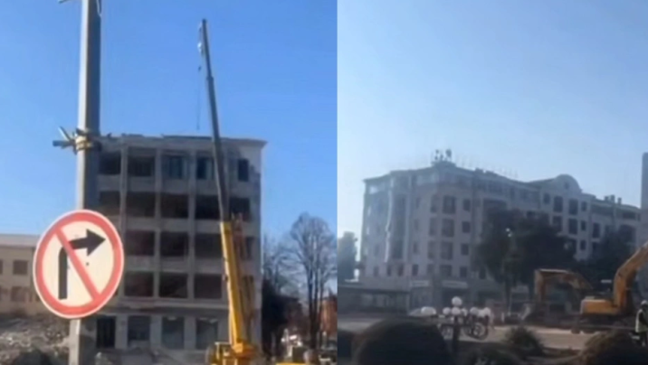Xankəndidə bir vaxtlar separatçıların yuvası olan qondarma hökumət evi sökülür.